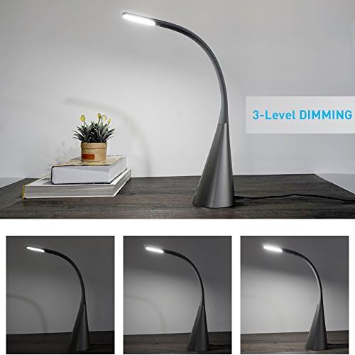 [3 brightness levels]: Touching the on/off button on desk lamp base, you can choose suitable brightness according to different environment. 1st touch for the first level brightness, 2nd touch for higher one and 3rd touch for the brightest one