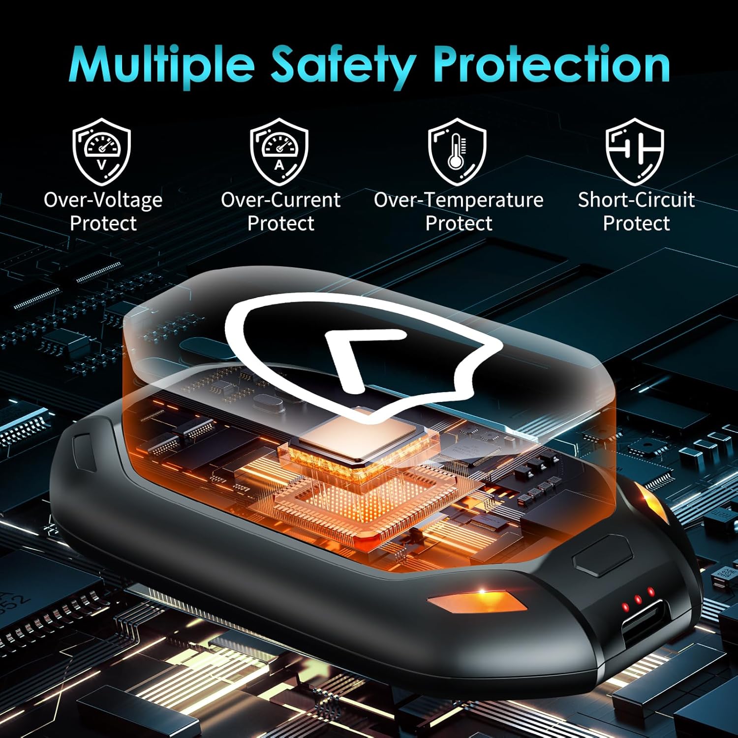 🔥【3S INSTANT AND SAFE HEATING HAND WARMERS】- Turn on the usb hand warmers and it will warm your hands in just 3 seconds without cooling. Click the power button to quickly switch between 3 gears: low 40°C (working time 10 hours), medium 50°C (working time 8 hours) and high 55°C (working time 6 hours). The rechargeable hand warmers has multiple built-in protection functions such as overvoltage, low voltage, overheating, short circuit, etc. to ensure that you can use the hand warmer safely.