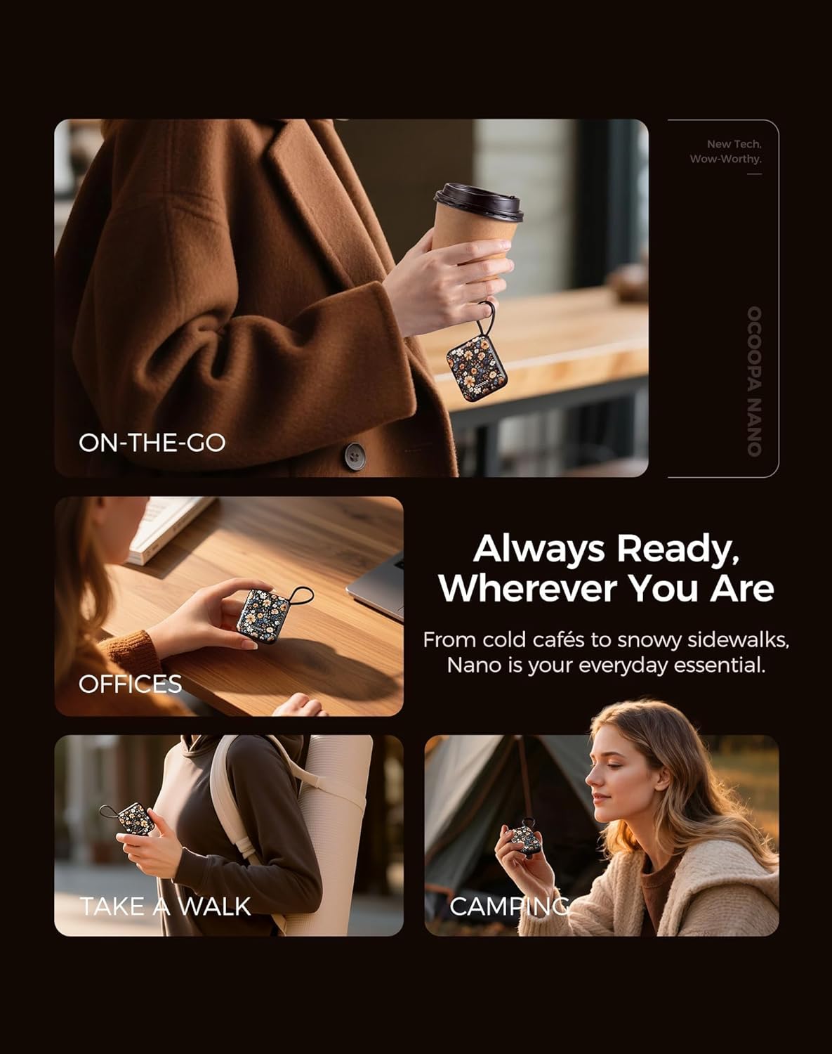 Ultra Slim & Stylish -Your Winter Essential: Just 0.59” thick and 1.74 oz, UT5 Nano Hand warmers fits effortlessly in pockets, gloves, or bags. The blossom-inspired square design transforms a hand warmer into a pocket-sized piece of art—smaller than your AirPods case!