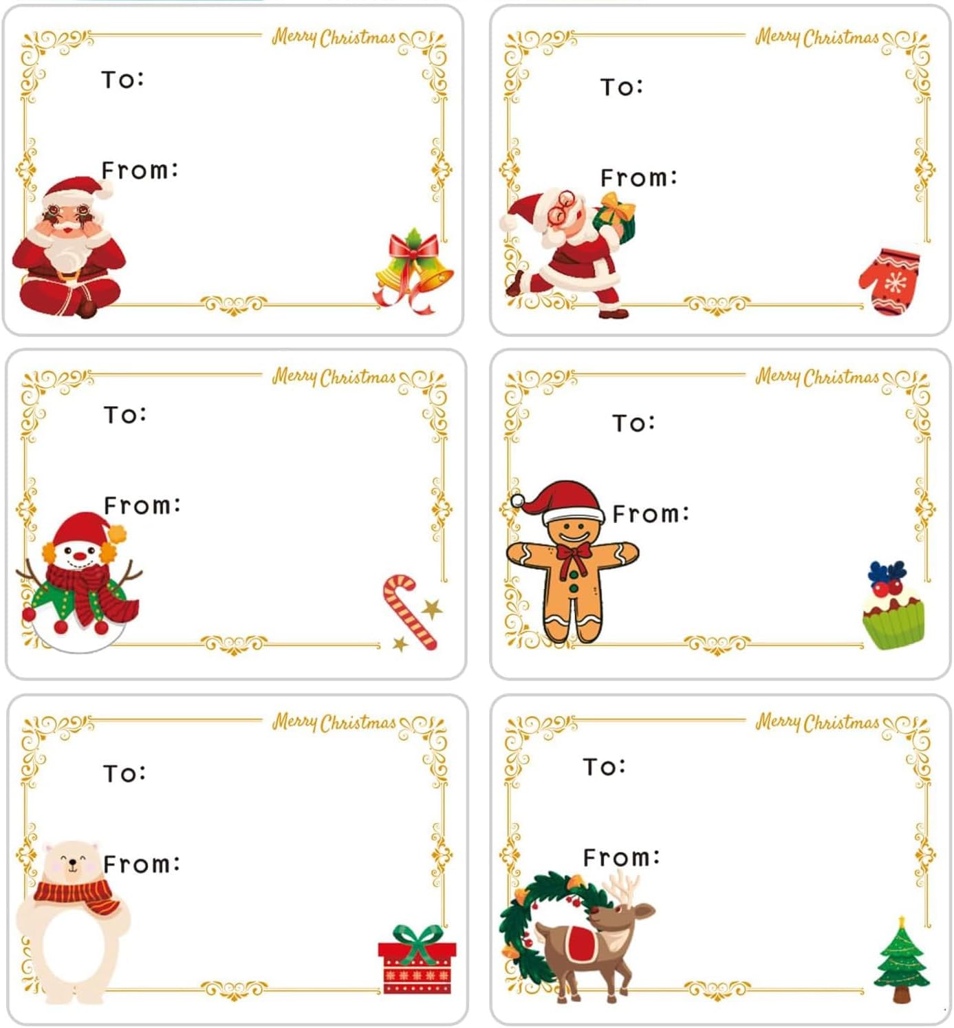 【Easy to Use】 You will get 25 sheets/150 Christmas labels, each sheet has 6 different designs of Christmas labels on it, you just need to tear them off and stick them to the gift box and mark the name