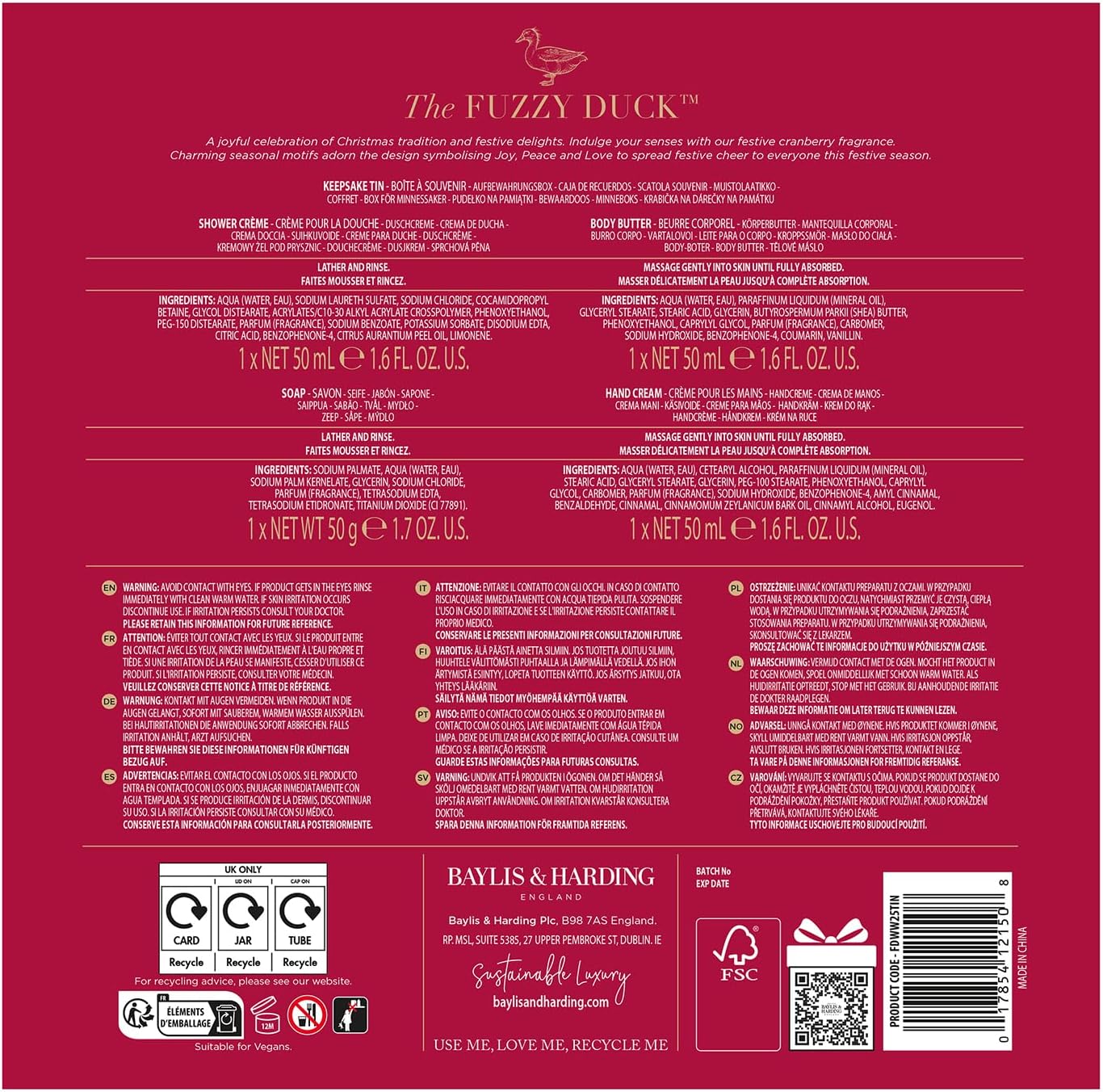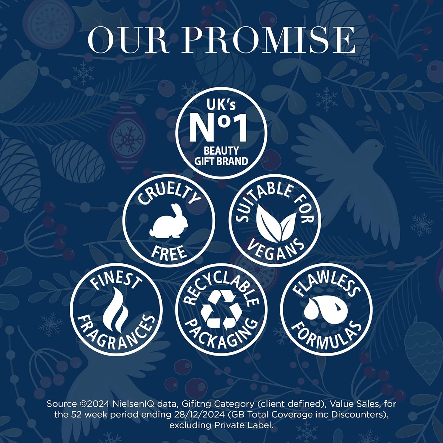 Everyone loves a gift, but the greatest joy comes from giving. Spoil your loved ones to this ultimate pamper gift set and beautiful designed tin. Containing 50ml shower crème, 50ml body butter, 50ml hand cream and 50g soap. A joyful celebration of Christmas traditions and festive delights, this winter wonderland of deliciously scented gifts is the perfect seasonal treat. Indulge your senses with festive cranberry, plum pudding, candy apple and spiced pear fragrances, all wrapped up in the classic festive colour blends of berry reds and navy blue. Charming seasonal motifs adorn the design symbolising Joy, Peace and Love to spread festive cheer to everyone this festive season. Christmas isn’t Christmas without the gentle aroma of festive scents in the air. Indulge in traditional favourite such as Festive Cranberry, Plum Pudding, Spiced Pear, Candy Apple.