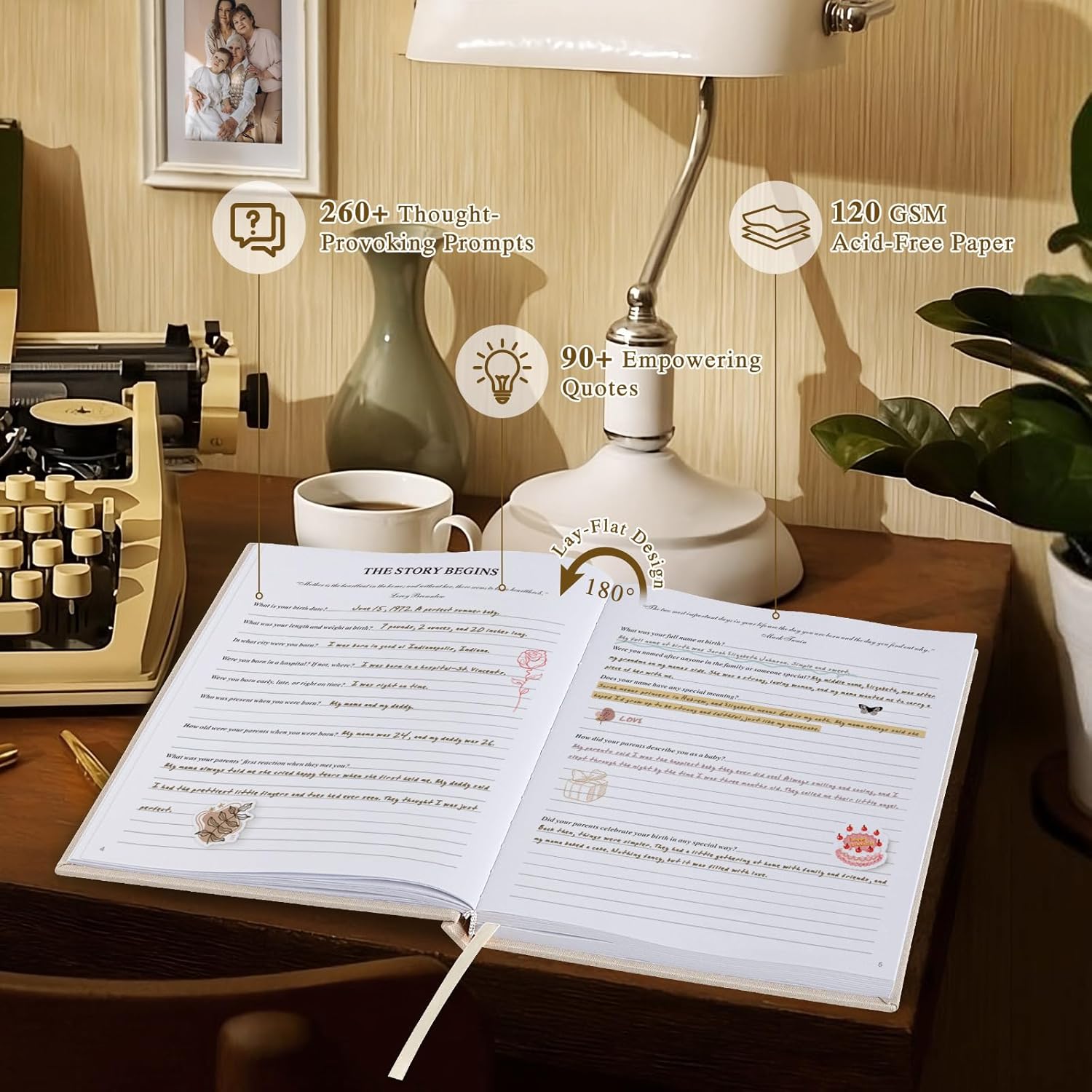 Premium Design: Crafted with 120 gsm premium no-bleed paper and a luxurious linen foil stamping covers, the share your life story journal offers a smooth and elegant surface for writing, making it as special as the memories it holds