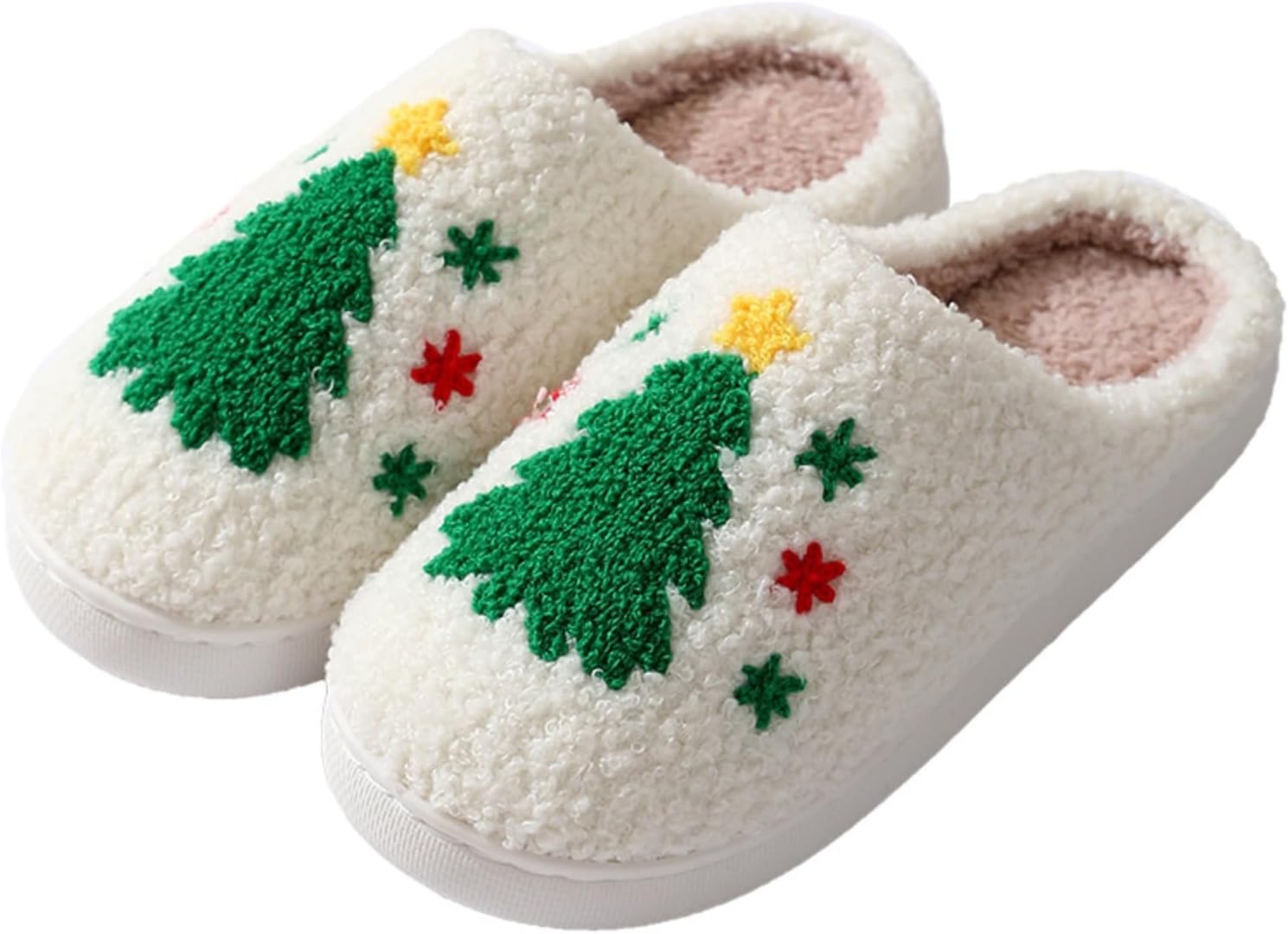 Christmas Cotton Slippers Winter Warm Padded Warm Shoes Christmas Tree Cotton Slippers Women’s Home Soft Bottom Non-slip Indoor Floor Mute Cotton Slippers