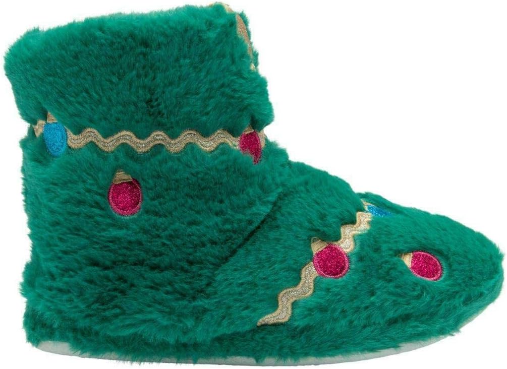 Get Festive With These Gorgeous Christmas Tree Design Slippers By Dunlop. Featuring Beautiful Embroidered Detailed and Faux Fur Throughout, These are Sure To Make The Perfect Gift. Rubber Outdoor Soles Adds Practicality.
