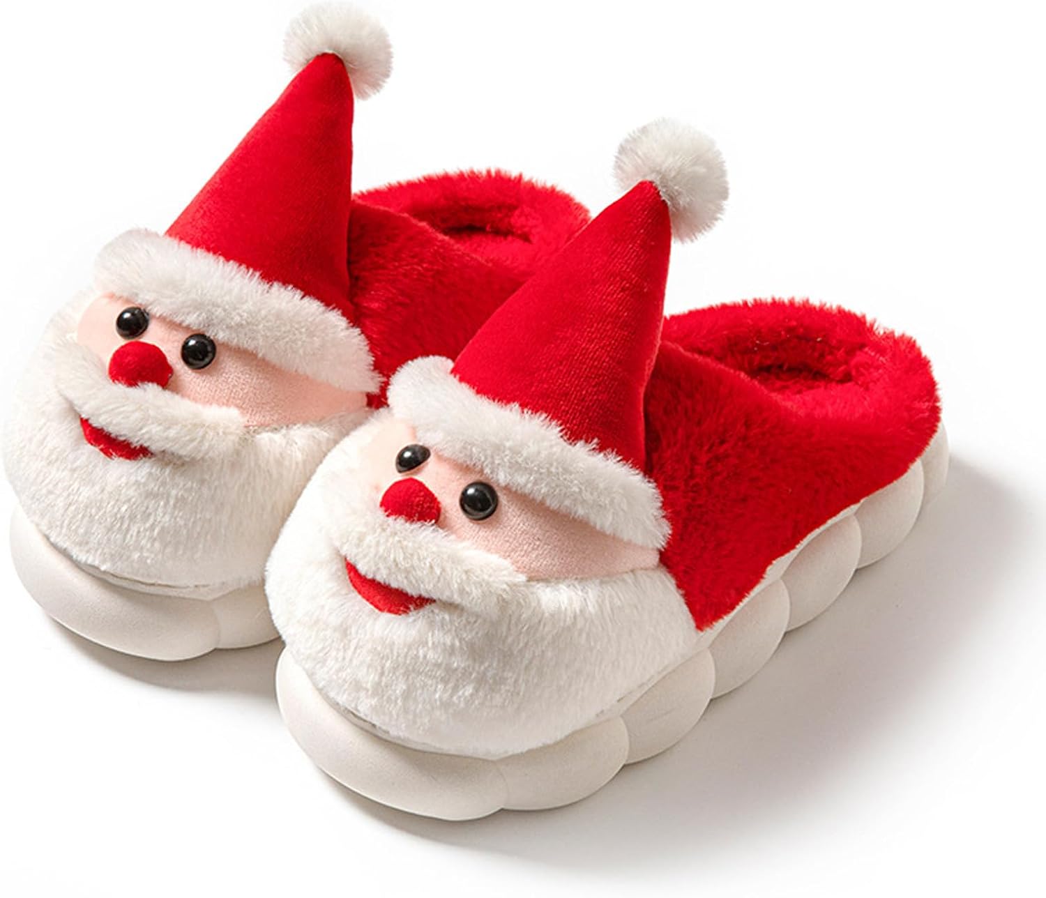 Product Description Holiday-ready comfort Slip into these Plush Christmas house slippers and bring Santa cheer to every step. The playful 3D hat, fluffy beard and bright nose turn cosy lounge time into a festive moment—perfect for Christmas morning photos, movie marathons and winter evenings at home.