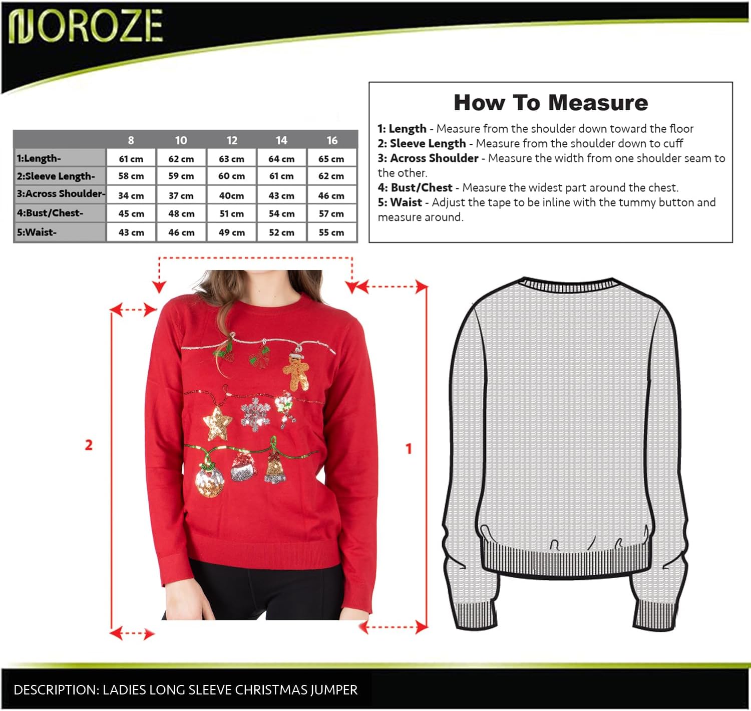 The NOROZE Women’s Top is designed to add festive flair and comfort to your holiday wardrobe. Featuring sequin details and unique seasonal motifs, these tops blend holiday charm with a modern fit. Ideal for pairing with any outfit they offer a cosy feel and stylish look for every celebration this season.