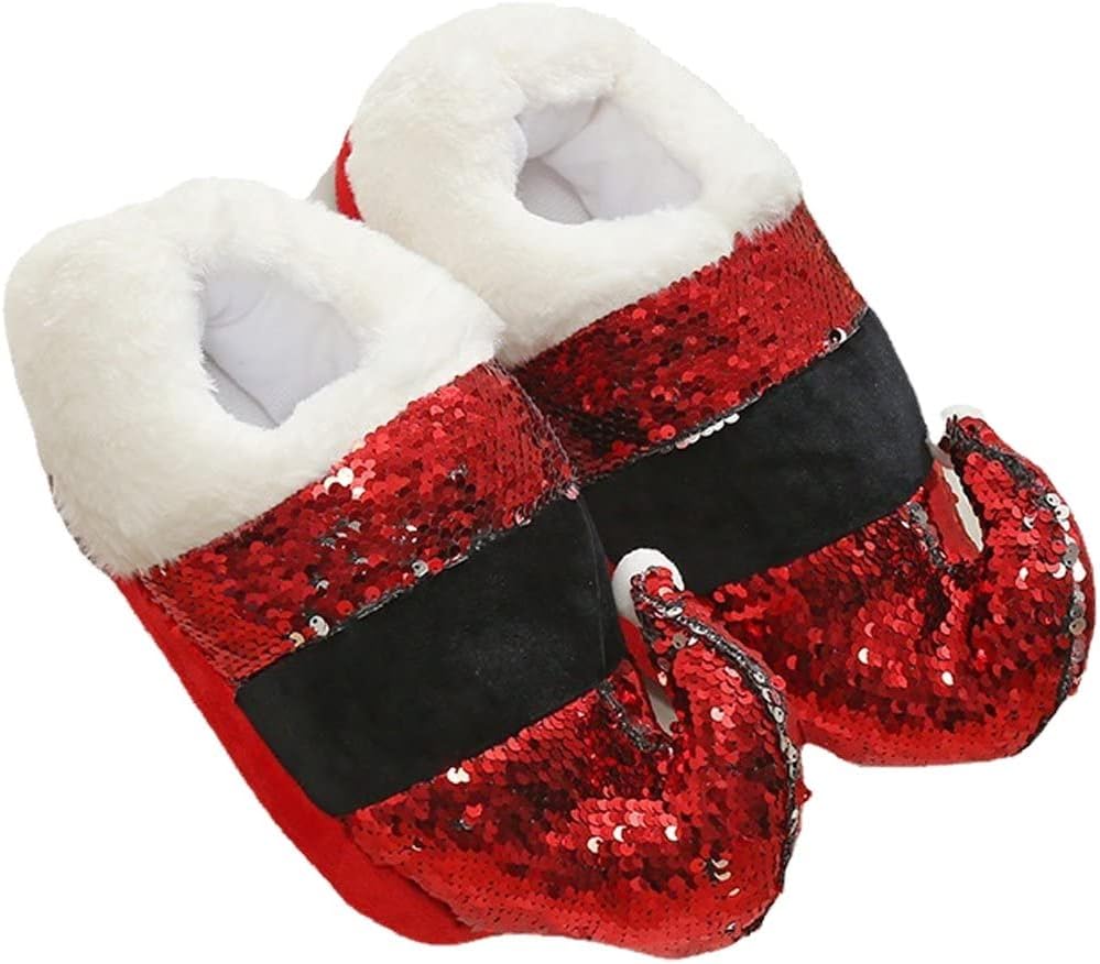Holiday Elements: Christmas-style red sequin slipper, feel the festive in the cold winter.