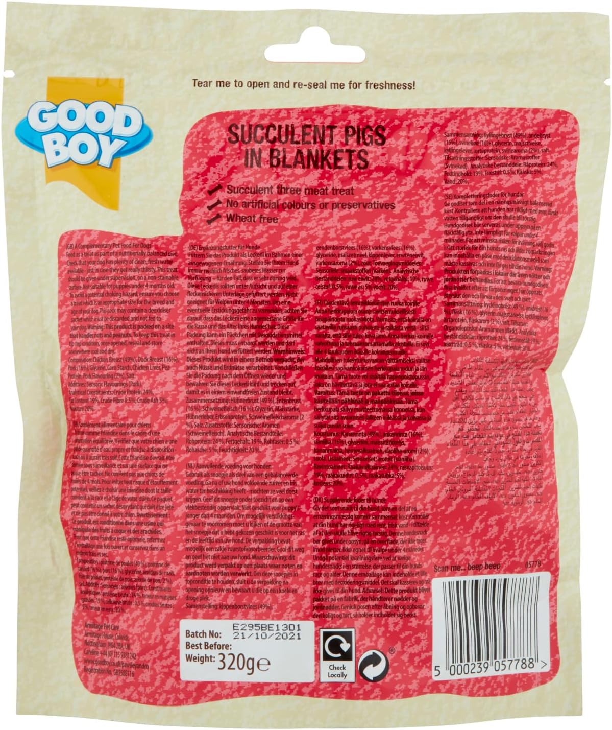 STOCK UP ON DOGGY FAVS: never be without your pup’s favourite treat, with our bulk box – contains 3 packs of 320g Good Boy Pigs in Blankets Dog Treats