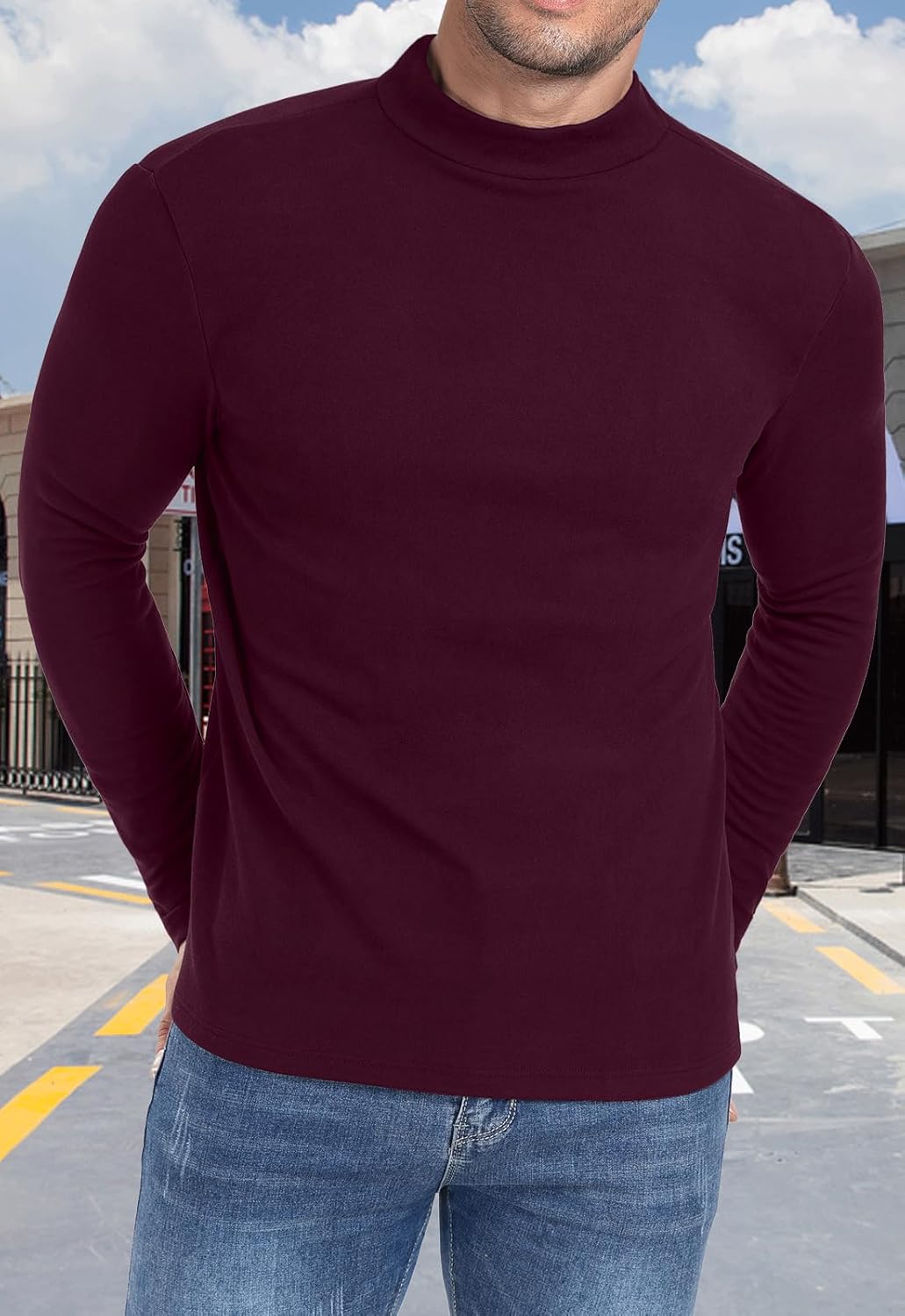 MLANM Mens Mock Turtleneck Long Sleeve Shirts Thermal Lightweight Pullover Top