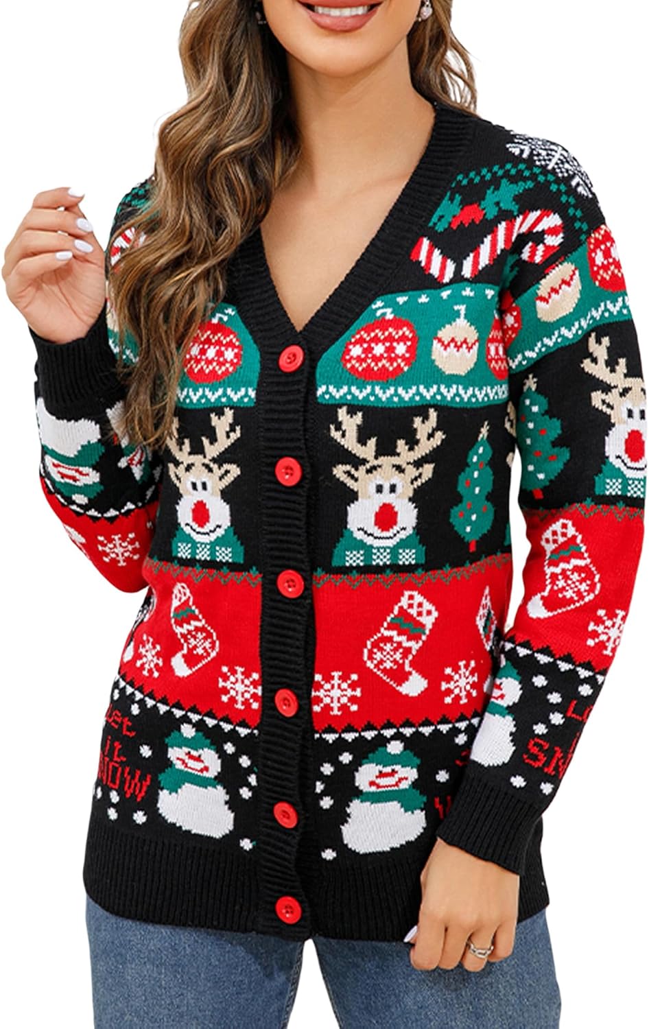 Women’s Christmas Cardigans Ugly Christmas Sweaters Long Sleeve V Neck Button Down Sweaters with Fun Patterns and Animals